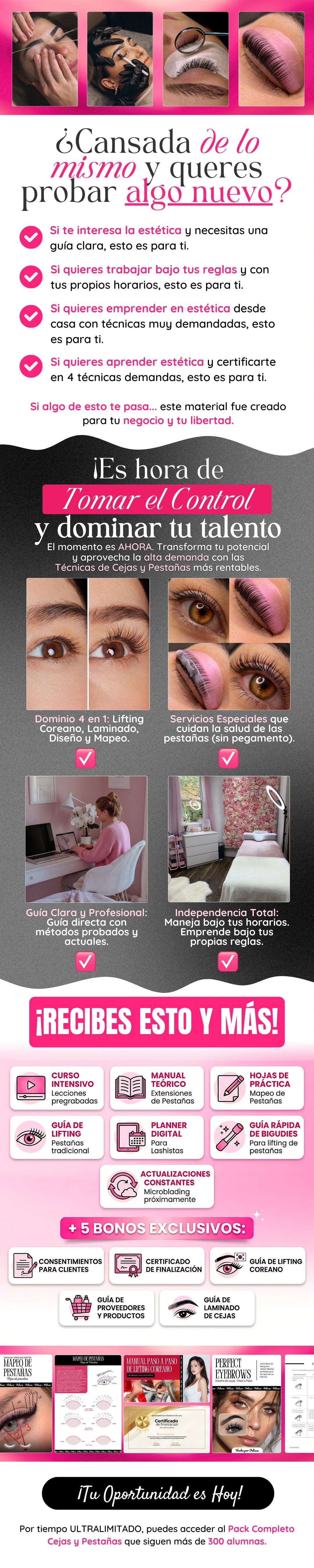 Este Pack está pensado para ti si buscas emprender YA y generar ingresos. Es ideal tanto para quienes se inician en la estética como para profesionales que quieren sumar técnicas modernas y muy demandadas a su agenda.